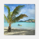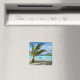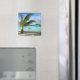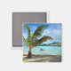 Aimant photo souvenir d'un palmier sur la plage de sable d'une luxueuse station de lune de miel surplombant l'eau sur l'île tropicale Bora Bora, près de Tahiti dans l'archipel pacifique de la Polynésie française.