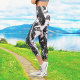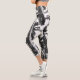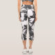 Dames Leggings Capri avec un design Tropical Palm Trees en noir et blanc.