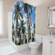 Rideau de douche gras avec palmiers tropicaux design dans un style postérifié coloré.