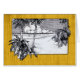 Carte d'art vierge au vent du Sud tropical oeuvres vintages de palmiers sur une plage de sable et de beaux nuages sur des vagues océaniques calmes sur un arrière - plan texturé couleur roseau. Cliquez sur Customiser pour ajouter votre nom ou votre message.
