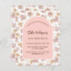 Un cadre en arc sur un motif de pampas herbe et fleurs roses et une croix dorée. Personnalisez et ajoutez un nom et des détails. 1 feuille = 1 invite imprimé bord à bord.