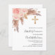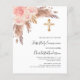 Floraux d'or rose et rose rousse, gazon rose et pampas et croix d'or. Personnalisez et ajoutez un nom et des détails. 1 feuille = 1 invite imprimé bord à bord.