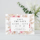 Mariage moderne enregistrer la carte de date avec un arrangement floral rose profond avec l'herbe de pampas et feuillage dans les tons naturels. Ce design a une allure moderne et comprend la photo du couple, qui peut être enlevée, au dos de la carte. Idéal pour un couple ayant une mariage d'inspiration bohème.