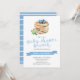 Cette baby shower invitation au brunch présente une cheminée de crêpes d'aquarelle avec bleuets et rayures bleues. Le bleu est doux pour un bébé garçon, une fille ou un genre neutre ! © 2022 Tea Olive Co.
