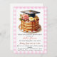 Pancakes Graduation Party Invitation Célébrez la graduation de la façon la plus douce avec notre invitation Pancakes Grad Party! Avec une délicieuse pile de crêpes dorées garnies de sirop frais, de baies et un casquette de graduation pour cette touche festive parfaite. Idéal pour un brunch ou une fête de remise de diplômes sur le thème du petit-déjeuner en famille ou entre amis. Personnalisez-le avec le nom du diplômé, l’école, l’année et les détails de l’événement pour un invitation de célébration unique que tout le monde aimera!