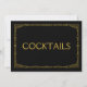 Panneau de mariage élégant et simple de style art déco "Cocktails", personnalisé avec votre propre texte, avec un cadre art déco doré sur fond noir.