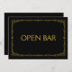 Panneau de mariage "Open Bar" de style art déco simple et élégant, personnalisé avec votre propre texte, avec un cadre art déco doré sur fond noir.