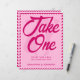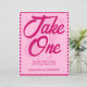 Invitez vos invités à prendre un cadeau avec style avec ce panneau de cadeau de mariage Modern Pink Chevron Take One. Avec son motif chevron rose chic, ce design épuré et contemporain est parfait pour les mariages modernes, romantiques ou minimalistes. Entièrement personnalisable avec vos noms et date de mariage, il se coordonne parfaitement avec votre collection de mariage Pink Chevron. Parfait pour les tables de cadeaux, les présentoirs de bienvenue ou les stations de dessert, ce panneau ajoute une touche élégante et cohérente à la décoration de votre réception.