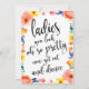 Un élégant panneau de mariage à la pointe, présente le texte "Mesdames, vous êtes absolument ravissantes, maintenant allez danser" dans une police d'écriture extravertie, la texture de la brosse ajoute une sensation spontanée et ludique. La couleur de fond peut être personnalisée en fonction de vos besoins et préférences, veuillez me contacter si vous avez une demande spéciale.