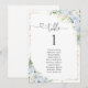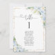 Pancarte de table à numéros de table fleurie bleu