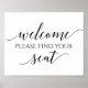 Pancarte de mariage à calligraphie romantique - "Bienvenue. Veuillez trouver votre siège" (Noir) : Cette pancarte est parfaite pour être exposée sur la table d'affichage du plan de sièges de votre mariage.