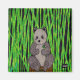 Représentation dessinée à la main d'une figure de panda noir et blanc tenant un petit brin de feuilles de bambou vert.