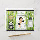 Thème Panda & bambou en noir, blanc & vert. Petit garçon dans une couche à motifs en bambou avec pantoufles et cravate arc, tenant un ours en panda farci. Parfait pour baby shower ou anniversaire. *** Instructions pour le sac à puce : Plier les bords courts au centre et au ruban, puis sceller les coutures du bas et du haut avec du ruban ou de la colle double face ***