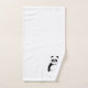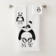 Bath towel set, consisting of a face cloth, hand towel and bath towel with a panda bear design. You can have this bath towel set in any colour by changing the background just click the edit this design button and choose the colour of your choice. You can also customise the text to read whatever you want. Should you require any help with customising then contact us through the message link on this page. Panda design bathroom towel set