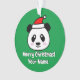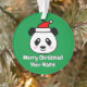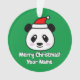 Le mignon panda du Père Noël porte l'ornement de l'arbre de Noël. Dessin animé amusant avec un texte personnalisé. Faites vos propres décorations de vacances. Cadeaux adorables pour amis, famille, enfants etc. Ajoutez votre propre photo au dos en option. Forme ronde avec trou pour ruban ou crochet. Arrière - plan couleur vert ou personnalisé. Des idées de décoration x-mas personnalisées.
