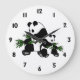 Panda maman est assise en train de manger du bambou pendant que bébé fait comme le bébé panda voit