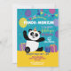 Anniversaire du Panda Panda-monium Invitation Turquoise. Impression arrière incluse. Modifier tout le texte