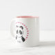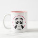 Cette tasse à café panda illustre un joli ours panda à la fourrure noire et blanche et une touche de rose dans ses oreilles. L'ours est entouré d'une arche de petits coeurs roses. Personnalisez cette tasse de panda avec votre nom ou texte de votre choix. Ce serait un grand cadeau pour un amoureux de l'ours de panda ou un fan d'ours de panda.