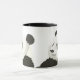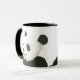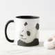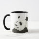 Cute tasse avec deux Pandas autour de la zone image. L'arrière - plan est blanc et la tasse est noire à l'intérieur, avec une poignée noire. Le Panda est peint.