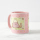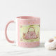 De jolies bouteilles de parfum et un sac rose décorent cette tasse de café. Cette tasse est idéale pour la Saint-Valentin, un anniversaire, la fête des mères, etc...Le dessin est tiré d'une illustration originale.