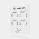 Présentez vos services avec style à l'aide de notre panneau de tarif acrylique personnalisé. Doté du logo de votre entreprise, ce panneau élégant affiche clairement votre prix, assurant à vos clients d'avoir en un coup d'oeil toutes les informations dont ils ont besoin. Parfait pour tout cadre professionnel.