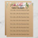 Personnalisez ces panneaux de papier de réception de mariage pour guider vos invités facilement vers leurs tables assignées. Affichez-les près de votre entrée ou de la manière créative que vous choisissez dans votre choix de plusieurs tailles de papier. Elégante aquarelle florale de narcisses blanches et roses sur un arrière - plan de couleur champagne mélangé doucement avec texte noir facile à lire. Vous devrez les éditer avec le numéro de table et les invités un prospectus à la fois et ajouter chacun au panier au fur et à mesure que vous passerez à la prochaine édition. Chambre pour huit noms par table. Pour supprimer des noms supplémentaires, supprimez le texte par interligne arrière. Ce design est assorti à toute une série de papeterie mariage chez Monograms et Monikers sur Zazzle.
