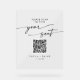 Ce panneau de siège en acrylique clair de code QR boho est parfait pour un mariage minimaliste. Le design bohème moderne présente une calligraphie rustique simple avec un style unique mais classique. Parfait pour toute saison : printemps, été, automne ou hiver. Le panneau indique "s'il vous plaît scanner pour trouver votre siège". Entrez votre adresse Web dans la section de code QR du modèle et le code QR sera automatiquement mis à jour et lié à votre site. Personnalisez le panneau avec vos noms et la date du mariage.