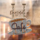Un panneau en bois de style vintage en forme de tasse de café dit Cafe.
