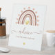 Demandez des conseils parentaux à des amis et à des membres de votre famille. Cette enseigne dans les tons rose vif et beige neutre avec arc-en-ciel boho est parfaite pour les baby showers à thème bohème. Ce panneau est un élément coordonné avec notre design Boho Rainbow. Un bel arc-en-ciel neutre avec un détail de coeur en feuille d'or. Conseil Baby shower panneau de piédestal.