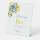 Panneau citron bleu floral Citrus Mimosa Bar Signe ! Ce panneau magnifiquement conçu présente des citrons jaunes vibrants, des fleurs bleues douces et un script élégant, parfait pour des douches nuptiales, des baby showers, des brunchs ou des fêtes d'été.