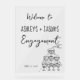 Panneau de bienvenue de fiançailles fantaisiste illustré à la main avec une tour de champagne.