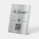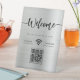 Faites une impression mémorable avec notre panneau de piédestal en métal argenté avec code QR WIFI et écriture de bienvenue moderne. Ce design simple mais élégant présente une écriture de bienvenue élégante avec un logo wifi simple en dessous dans un style moderne sur un fond en métal argenté brossé faux. Les informations de réseau, y compris le mot de passe, sont disposées de manière spacieuse.