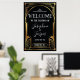 Panneau de bienvenue noir et or Art déco des années 1920 pour anniversaire, mariage, baby shower, fête, entreprise dans l'ère du jazz