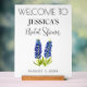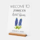 Panneau de bienvenue pour la fête de mariage aux bleuets, floral bleu, Texas, aquarelle nature. Calligraphie élégante et simple, photo Panneau de fête de mariage. Personnalisez-le avec vos détails.