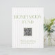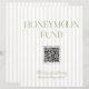 Un panneau de fonds de lune de miel moderne présentant des bandes verticales beige doux associées à une typographie verte sauge raffinée. Conçu avec une mise en page épurée et un code QR intégré, il offre un moyen simple et élégant pour les invités de contribuer à votre lune de miel.