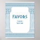 Panneau de cadeaux de fête avec des piliers de temple minimalistes et un motif grec méandre en bleu. Parfait pour vos mariages, fiançailles, fêtes de fin d'études, anniversaires de mariage, faire-part de mariage, enterrements de vie de jeune fille et anniversaires sur le thème de la Grèce antique ou de la Rome antique.