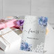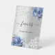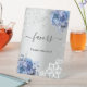 Un fond d'apparence argentée fausse. Décoré de roses bleues, de fleurs, de dentelle blanche et de quelques diamants. Avec le texte : faveurs. Veuillez en prendre un !