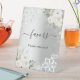 Un fond d'aspect argenté faux. Décoré de roses blanches, de fleurs, de dentelle blanche et de quelques diamants. Avec le texte : faveurs. Veuillez en prendre un !