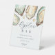 Ce panneau de piédestal côtier chic présente des illustrations d'huîtres et de perles d'aquarelle et de crème douce, avec "barre d'huîtres" et de brèves instructions en écriture bleu marine classique et en lettres de bloc. Parfait pour les mariages de plage, d'été ou de nautique, ce panneau peut être placé à côté de votre barre brute pour une touche personnalisée chic.