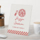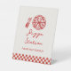 Ajoutez une petite touche de plaisir à votre baby shower avec ce panneau du guichet de la pizza Slice Slice Baby sur le thème de la pizza. Avec des illustrations de pizzas ludiques, des accents de chèque rouge et blanc et une typographie audacieuse, il est parfait pour guider les invités à la table des cartes et des cadeaux. Idéal pour des célébrations décontractées, mémorables et entièrement personnalisables pour correspondre à votre libellé et à vos détails de l'événement.
