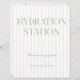 Un panneau de station d'hydratation frais et élégant avec des rayures beiges douces, associé à une typographie serif vert sauge raffinée et une écriture manuscrite délicate. Parfait pour les mariages en plein air, les fêtes de jardin et les célébrations estivales. Fait partie de la collection de mariage coordonnée « Iris » — explorez les pièces assorties dans toute la gamme. • Les maquettes pour ce design ont été créées à l'aide de Midjourney AI.