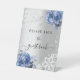 Un fond d'aspect argenté factice. Décoré de roses bleues, de fleurs, de dentelle blanche et de quelques diamants. Avec le texte : Veuillez signer le livre d'or.
