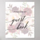Ce panneau de livre d'or à la calligraphie élégante et aux fleurs fanées est parfait pour un mariage d'automne. Le design présente une typographie romantique et fantaisiste superposée à un magnifique bouquet de fleurs rose blush, marsala et bordeaux.