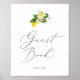 Ce panneau de livre d'or de jardin de citron moderne est parfait pour un mariage de printemps ou d'été. Le design méditerranéen rustique présente de beaux citrons aquarelles lumineux avec des fleurs blanches bohèmes et des feuilles vertes élégantes.