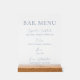 Élevez votre bar de réception avec ce signe de menu de bar en acrylique clair bleu poussiéreux élégant. Conçu avec une typographie moderne raffinée et des accents de script doux, ce panneau en acrylique minimaliste crée une déclaration sophistiquée pour les mariages côtiers, de jardin et de destination.