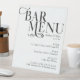 Un simple panneau de menu de bar sur piédestal avec une typographie moderne noire et blanche. Personnalisez avec vos options de cocktails.
