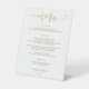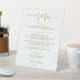Panneau de menu de mariage (20x25 cm) - Calligraphie rebondissante (Or) : Placez ce panneau de menu à votre réception de mariage pour informer vos invités de ce qui est au menu ! Cela fonctionne très bien si vous avez un buffet à votre mariage ! Ce panneau présente une calligraphie / typographie rebondissante moderne en or mise en valeur par un texte simple et clair pour les détails de votre menu de mariage.