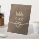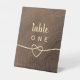 Élégant, simple, enseigne de numéro de table de mariage en bois rustique avec cœur de corde dorée fausse et écriture calligraphique moderne