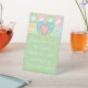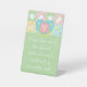 Quatre carrés aux pastels doux de rose, vert, bleu et jaune sont encadrés par un motif blanc comme design et décorés d'icônes mignonnes sur le thème du bébé, d'une bouteille, d'une couche, d'un hochet et d'un bib. Un panneau de superposition verte a un motif de point similaire pour donner l'apparence d'être fait maison et une sucette bleue, rose et jaune se trouve en haut. Un échantillon initial se trouve à l'intérieur de la sucette et un échantillon de texte se trouve au-dessus du panneau d'accent, ces deux-là peuvent être customisés pour votre propre baby shower afin qu'il reflète l'initiale du bébé et les informations que vous voulez partager avec vos invités, comme où laisser des cadeaux ou des informations sur des jeux ou des événements spéciaux. N'oubliez pas de consulter la collection complète de courtepointes pour bébés pour obtenir d'autres cadeaux et des produits pour un baby shower ou le petit de votre vie.