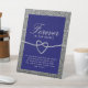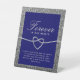 Élégant panneau de piédestal de table de mariage mémorial pailleté argenté et bleu royal simple avec cœur de corde romantique et écriture calligraphique moderne.
